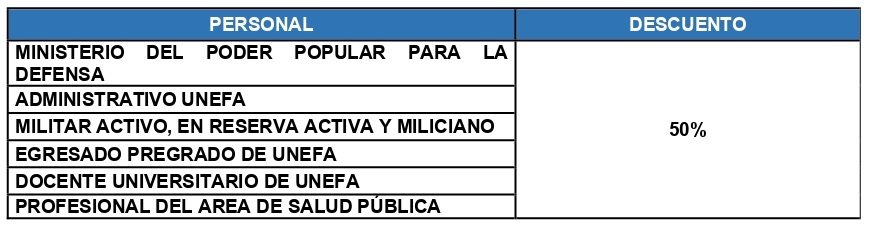 EL DESCUENTO DE 50% UNICAMENTE APLICABLE AL ARANCEL DE CADA PERIODO ACADEMICO